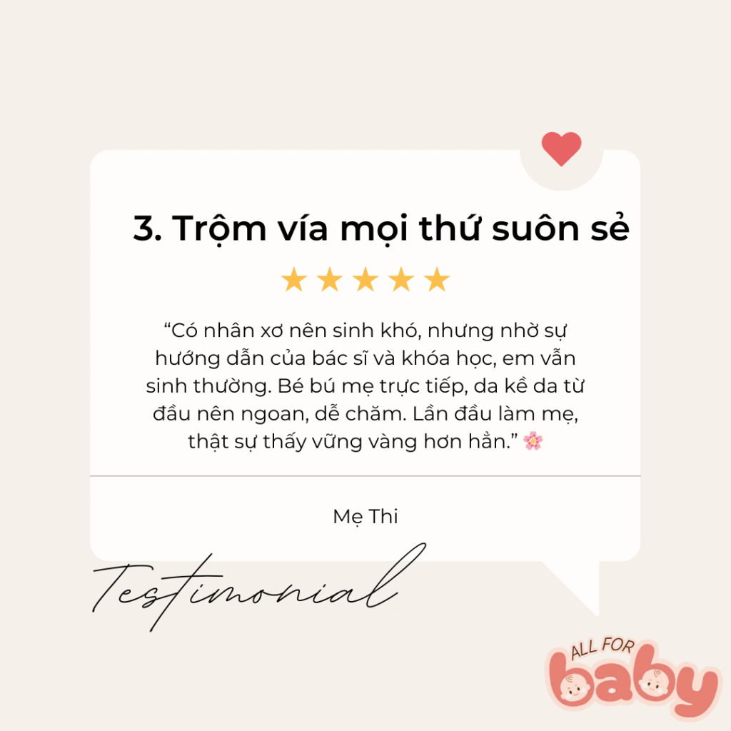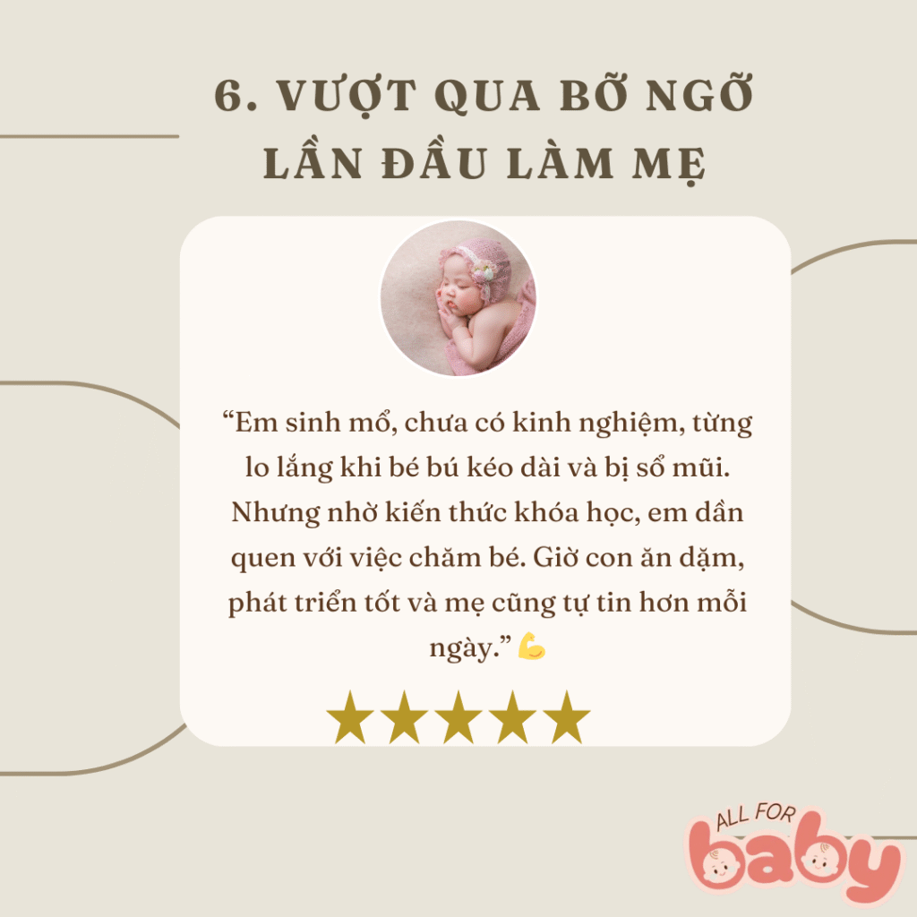👉 Với All For Baby, mẹ không chỉ nhận kiến thức, mà còn có người đồng hành đáng tin cậy để chuẩn bị trọn vẹn cho hành trình vượt cạn và chăm sóc bé yêu.