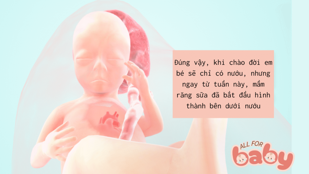 Tuyến mồ hôi xuất hiện: Đây là bước tiến quan trọng để làn da bé phát triển nhiều lớp hoàn chỉnh ở tuần tiếp theo.