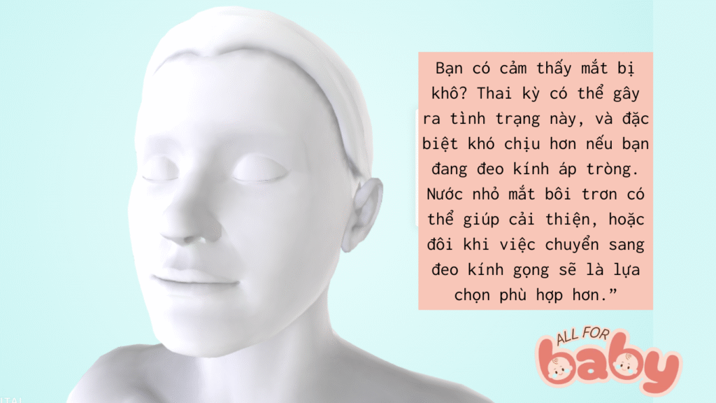 Thay đổi thị lực: Một số mẹ thấy mắt mờ, khô hoặc nhạy cảm hơn. Triệu chứng này thường thoáng qua và sẽ hết sau sinh.