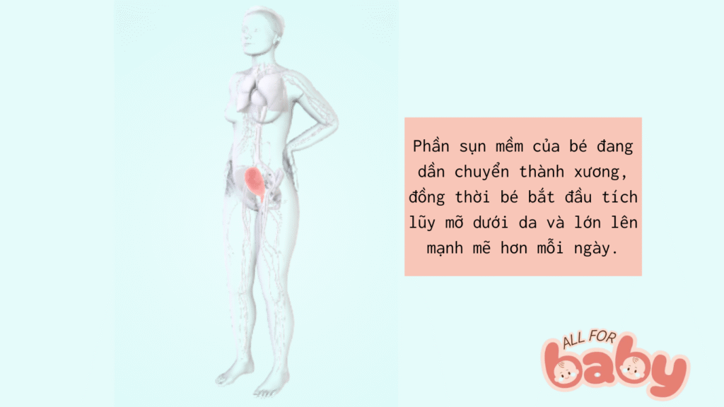 Khung xương đang cứng lại: Hệ xương của bé dần chuyển từ sụn mềm sang xương cứng – nền tảng cho sự vận động sau này.