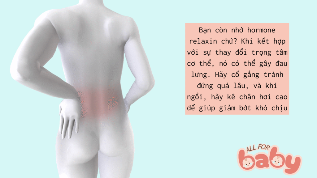 Ngứa da & rạn da: Do da bụng và ngực căng ra, mẹ dễ cảm thấy ngứa và xuất hiện vết rạn. Dưỡng ẩm đều đặn và tăng cân từ từ sẽ giúp giảm bớt.